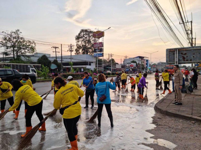 เย็นวันนี้ (13 กุมภาพันธ์ 2566) เทศบาลนครสุราษฎร์ธานี ได้รับแจ้งเหตุมีประชาชนได้รับความเดือดร้อนในการสัญจร เกิดอุบัติเหตุ เนื่องจากมีคราบน้ำมันหกบริเวณถนนกาญจนวิถี หลังได้รับแจ้ง นายประเสริฐ บุญประสพ นายกเทศมนตรีนครสุราษฎร์ธานี จึงได้มอบหมายให้นายรักพงษ์ แซ่ตั้ง รองนายกเทศมนตรี นำเจ้าหน้าที่สำนักสาธารณสุขและสิ่งแวดล้อม เทศบาลนครสุราษฎร์ธานี ลงพื้นที่ดำเนินการฉีดล้างทำความสะอาดถนน เพื่อความปลอดภัยและลดปัญหาการเกิดอุบัติเหตุบนท้องถนน จากกรณีมีน้ำมันหกบริเวณถนนกาญจนวิถี ตั้งแต่หน้าปากซอยหมู่บ้านเครือวัลย์จนถึงปากซอยถนนกาญจนวิถี 16 ขณะนี้ได้เคลียร์พื้นที่สามารถสัญจรได้เป็นปกติแล้ว