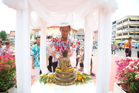 นครสุราษฎร์ธานี จัดขบวนแห่สงกรานต์ สรงน้ำพระ รดน้ำขอพรผู้สูงอายุ เนื่องในวันสงกรานต์ 2566
