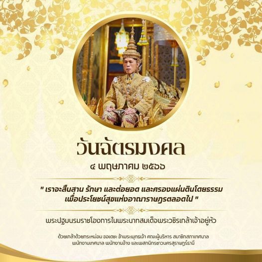 ทศบาลนครสุราษฎร์ธานี เชิญชวนจัดกิจกรรมเฉลิมพระเกียรติพระบาทสมเด็จพระเจ้าอยู่หัว เนื่องในวันฉัตรมงคล 4 พฤษภาคม 2566