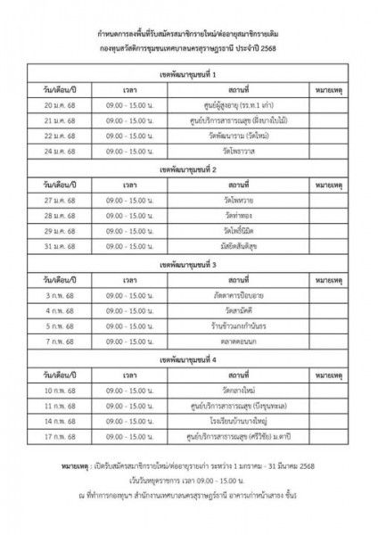 เทศบาลนครสุราษฎร์ธานี ลงพื้นที่รับสมัครสมาชิกกองทุนสวัสดิการชุมชนเทศบาลนครสุราษฎร์ธานีและต่ออายุสมาชิกรายเก่า ประจำปี 2568