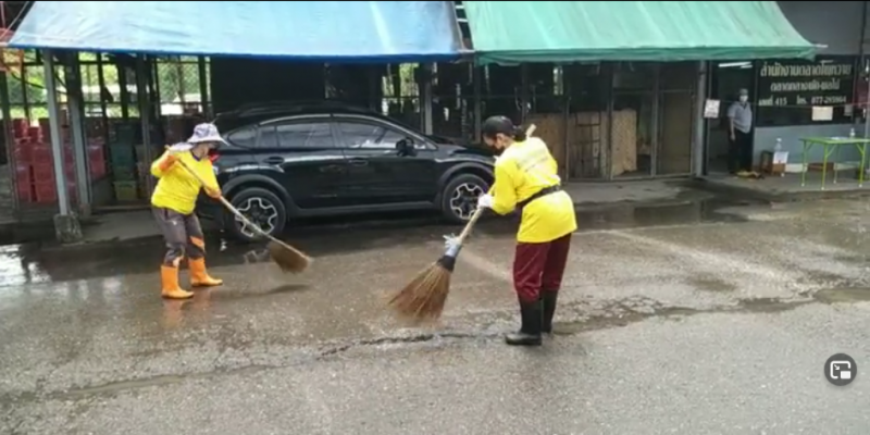 เทศบาลนครสุราษฎร์ธานี ล้างตลาดโพหวาย ป้องกันการแพร่ระบาดของโควิด-19 สร้างความมั่นใจให้กับพี่น้องประชาชน