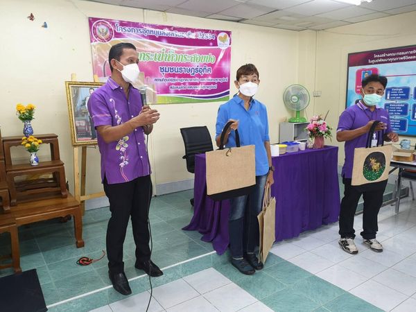 เมื่อวันที่ ๑๔ สิงหาคม ๒๕๖๔ (วันนี้) นายหัสชัย เรืองนุ้ย รองนายกเทศมนตรีนครสุราษฎร์ธานี พร้อมเจ้าหน้าที่กองสวัสดิการสังคม เดินทางไปยังศูนย์ผู้สูงอายุ (เทศบาล๑เก่า) เพื่อเยี่ยมชมการทำกระเป๋าหิ้วกระสอบปอของชุมชนราษฎร์อุทิศ ตามโครงการเงินอุดหนุนชุมชน ประจำปีงบประมาณ ๒๕๖๔ โดยเทศบาลนครสุราษฎร์ธานีจัดโครงการดังกล่าวขึ้น มีวัตถุประสงค์เพื่อสร้างอาชีพ เพิ่มรายได้ให้กับคนในชุมชน พร้อมทั้งเสริมสร้างความเข้มแข็งและพัฒนาคุณภาพชีวิตให้คนในชุมชนด้วย