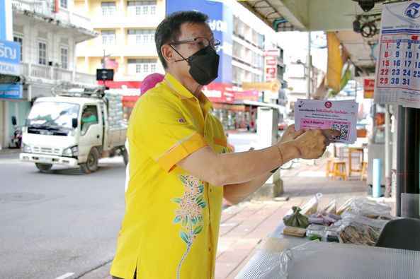 บรรยากาศลงพื้นที่ประชาสัมพันธ์ให้ประชาชนลงทะเบียนจองวัคซีน