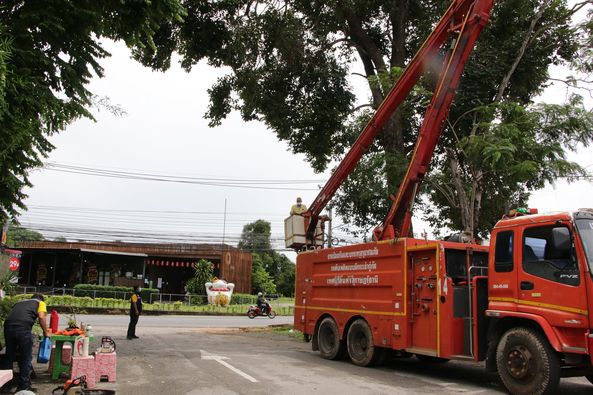 เทศบาลนครสุราษฎร์ธานี ลงพื้นที่ตัดต้นไม้ใหญ่ข้างร้านชายคาเคียงดาว