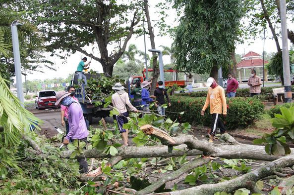 เทศบาลนครสุราษฎร์ธานี ลงพื้นที่ตัดต้นไม้บริเวณสวนศรีตาปี เพื่อเป็นการปรับปรุงภูมิทัศน์