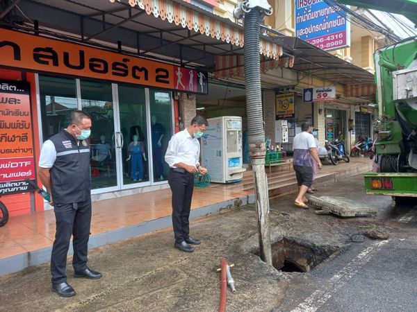 นายกฯแป๊ะลงพื้นที่ติดตามการดูดล้างท่อป้องกันน้ำท่วม ถนนพ่อขุนทะเล
