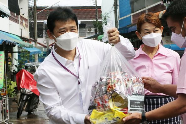 มอบถุงยังชีพบรรเทาความเดือดร้อนให้กับผู้กักตัว ๑๔ วัน ในเขตเทศบาลถนนข้างสะพานนริศซ้ำอีกครั้ง
