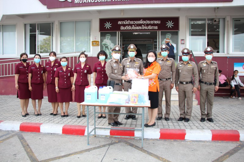 ให้แก่เจ้าหน้าที่สถานีตำรวจภูธร จังหวัดสุราษฎร์ธานี เพื่อใช้ในการปฏิบัติหน้าที่ ป้องกันโรคโควิด - 19 โดยมีพล.ต.ต. ฐากูร เนตรพุกกณะ พบก.ภ.จว.สุราษฎร์ธานี และ พ.ต.อ. ศิริชัย สุขสาตต์ ผกก. สภ. เมืองสุราษฎร์ธานี ร่วมรับมอบ เมื่อวันที่ 9 เมษายน 2563 ณ สถานีตำรวจภูธร จังหวัดสุราษฎร์ธานี