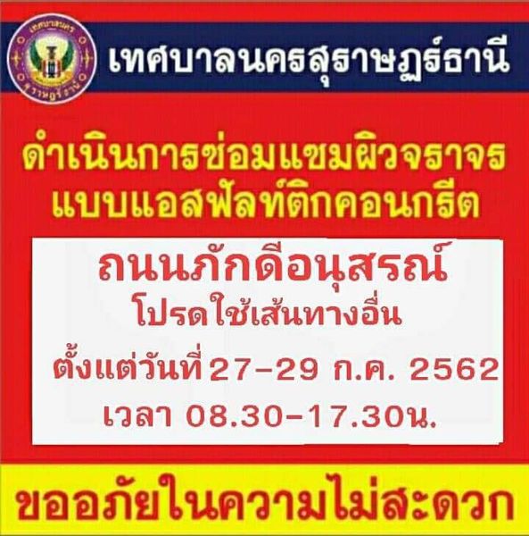 เนื่องจากเทศบาลนครสุราษฎร์ธานีจะดำเนินการปรับปรุงผิวจราจรแบบแอสฟัลท์ติกคอนกรีต