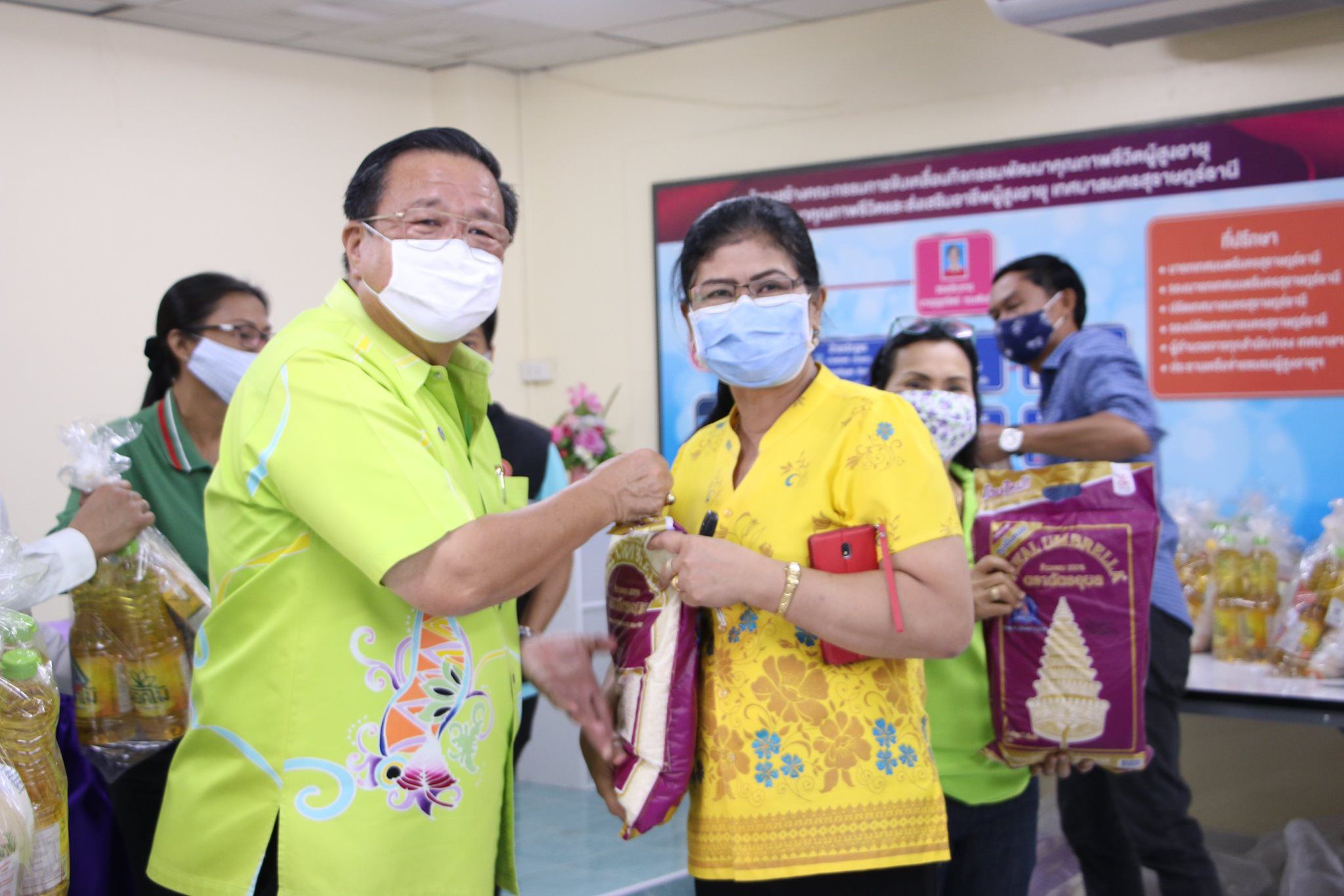 เมื่อวันที่ 29 เมษายน 2563 เทศบาลนครสุราษฎร์ธานี โดยนายสุฟ้าง แซ่หว่อง รองนายกเทศมนตรีนครสุราษฎร์ธานี รับมอบข้าวสาร จำนวน 30 ถุง