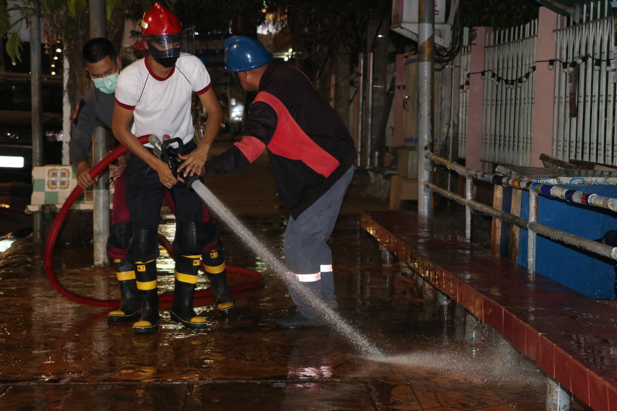 ทำความสะอาดพื้นที่ขายทั้งหมด และทำการฆ่าเชื้อในพื้นที่ตลาดศาลเจ้า