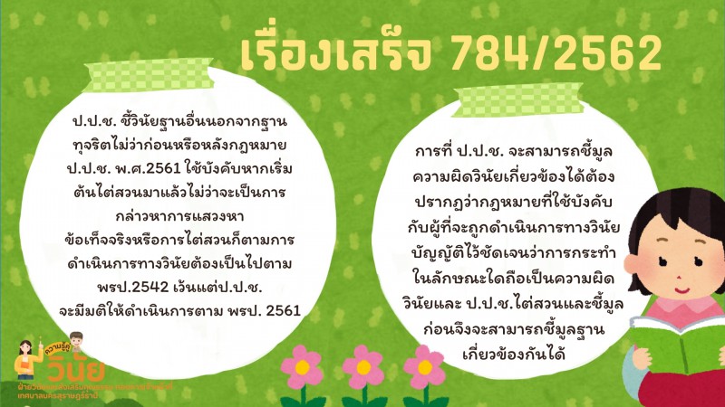 - ความรู้คู่วินัย เรื่อง แนวทางปฏิบัติกรณีป.ป.ช.ชี้มูลความผิดวินัยฐานอื่นนอกจากวินัยฐานทุจริตต่อหน้าที่ราชการ