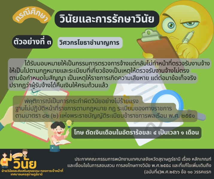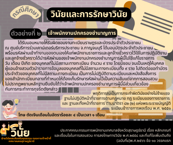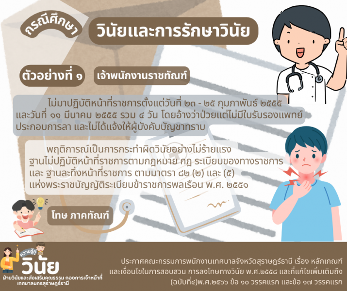 - กรณีศึกษา วินัยและการรักษาวินัย ฐานไม่ปฏิบัติหน้าที่ราชการตามกฎหมาย ฐานละทิ้งหน้าที่ราชการ และ ฐานประพฤติชั่ว